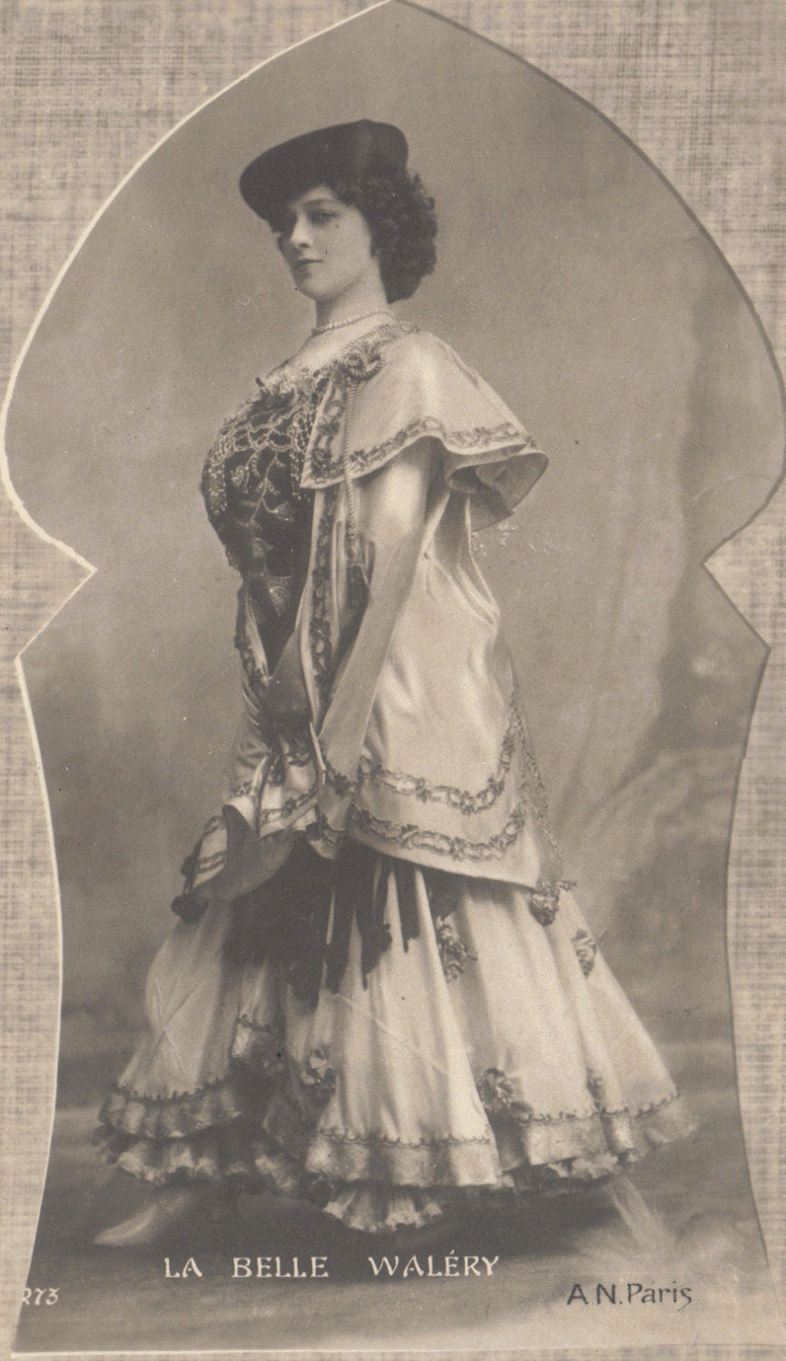 Who is "La Belle Waléry?" 'tis a mystery! We've seen other images of this beautiful stage performer, but can't find out anything about her. She certainly has the appearance of a Spanish dancer, but who knows! Of course, the name throws us. Was she related to the famous photographer Stanisław Julian Ignacy, Count Ostroróg (1863-1935) who used the name Waléry as a pseudonym (among others) in his work, just as his father did before him? If you have any history on her, please share!